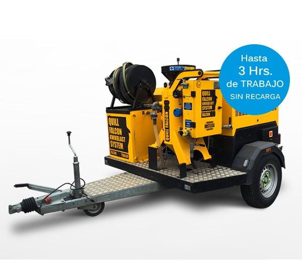 El Nuevo Quill Falcon Cyclone 60 Trailer,es el mas conveniente de la gama Quill Falcon.Se compone de un Quill Falcon Cyclone 60,un estanque de agua de 115 litros y un compresor de 90 o 140 CFM.En esencia proporciona a nuestros clientes todo lo necesario para comenzar a arenar casi inmediatamente.Este equipo le quita la molestia y preocupación de quedarse en terreno esperando que las compañías de alquiler de equipos entreguen compresores y suministro de agua;potencialmente poco confiables.